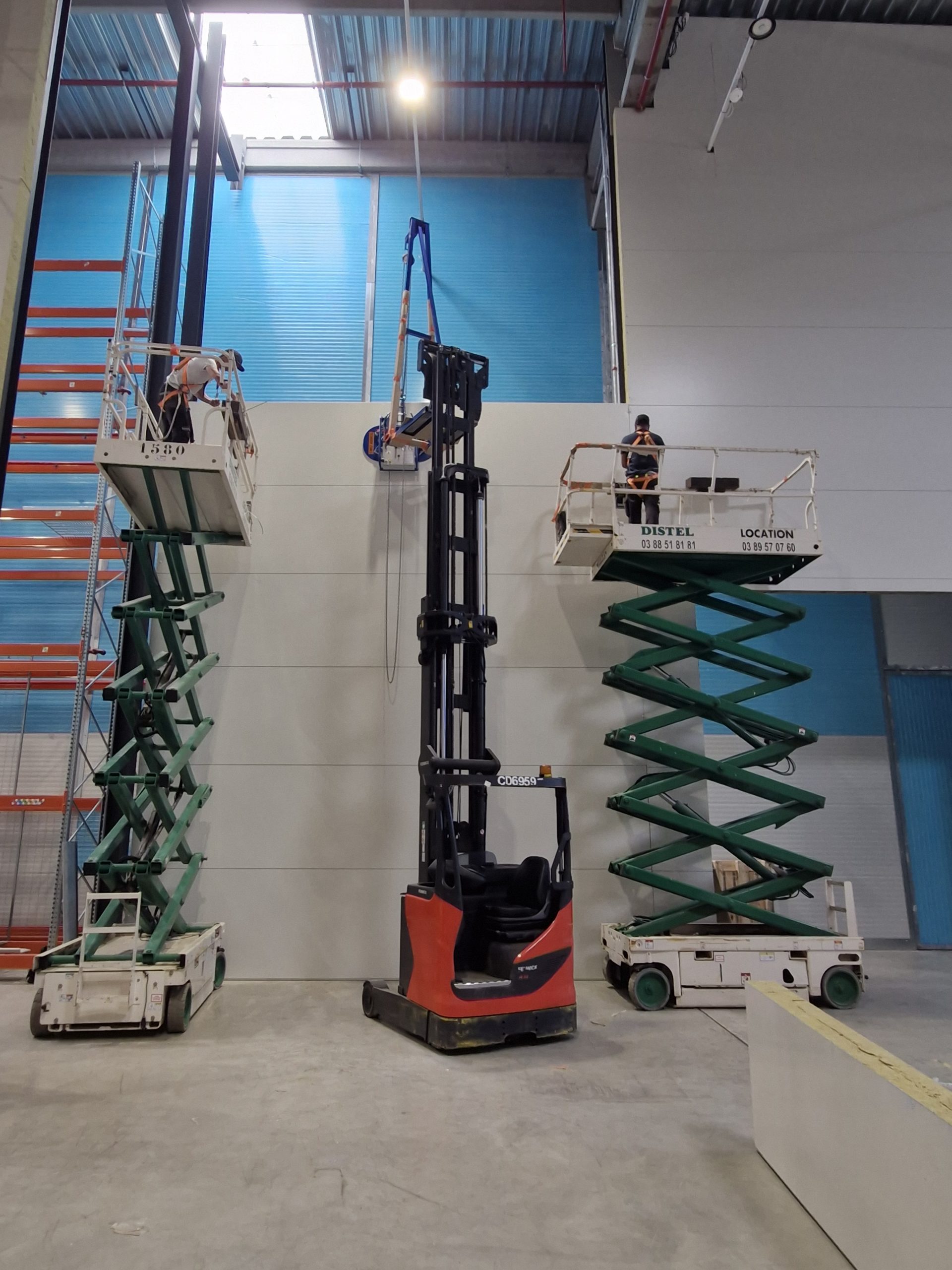 L'espace disponible, le planning d'exécution et la pose de panneaux à une altitude maximale d'environ 13m ont représenté un défi qui a exigé une étude minutieuse des procédés de mise en œuvre.